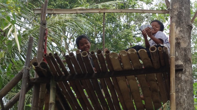 El día siguiente fue recorrida por el pueblo. Y ahí nos encontramos con varias cosas interesantes: una canchita de fútbol en el frente de una casa, un par de personas con la máquina para recolectar arroz, chicos que nos miraban desde una especie de casa del árbol y mujeres haciendo Batik (de hecho este un pueblo reconocido por sus Batik).